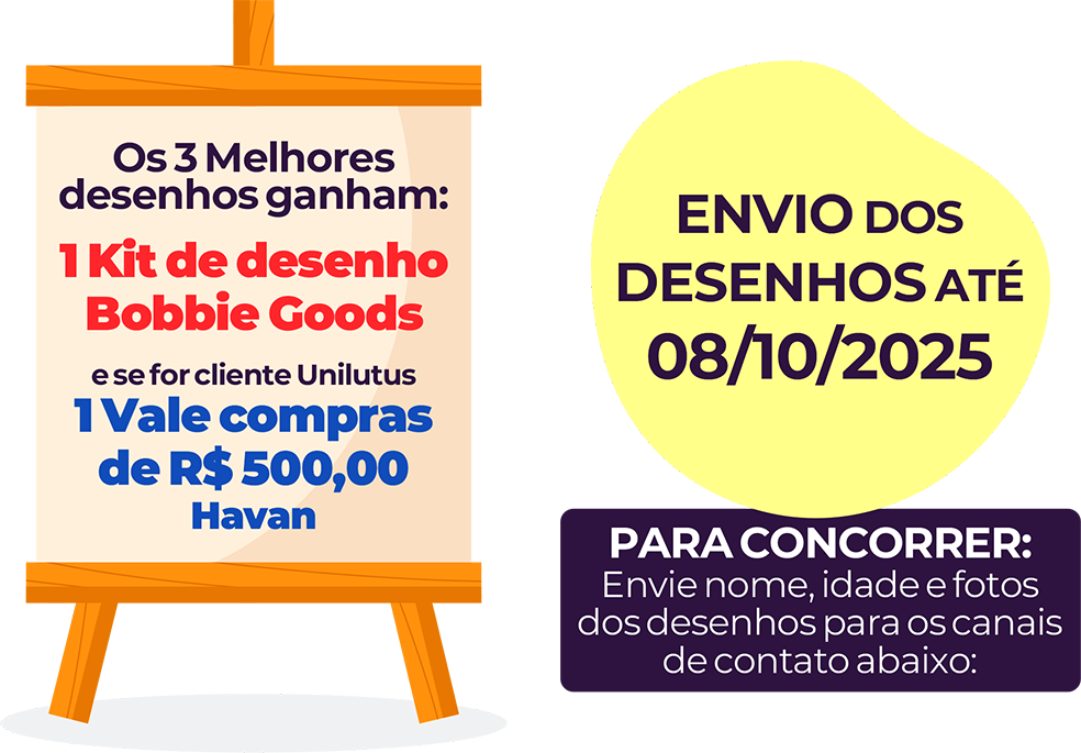 REGULAMENTO: Clique Aqui e leia com atenção o regulamento do Concurso Cultural Colorindo a Paz Unilutus. Nele estão todas as informações sobre prazos, formas de participação e detalhes da premiação. Qualquer dúvida, entre em contato com nossa equipe pelo Telefone/WhatsApp 41 3077-0022.
